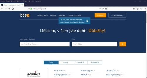 Hledání zaměstnání na Jobs - systém je přehledný a jasný, snaží se uživateli poskytnout vyhledání přesně toho, po čem prahne. Když rozkliknete jakoukoli volnou pracovní pozici, vyskočí na vás souhrn informací, které pro vás jsou ve spojitosti s danou nabídkou těmi nejdůležitějšími.